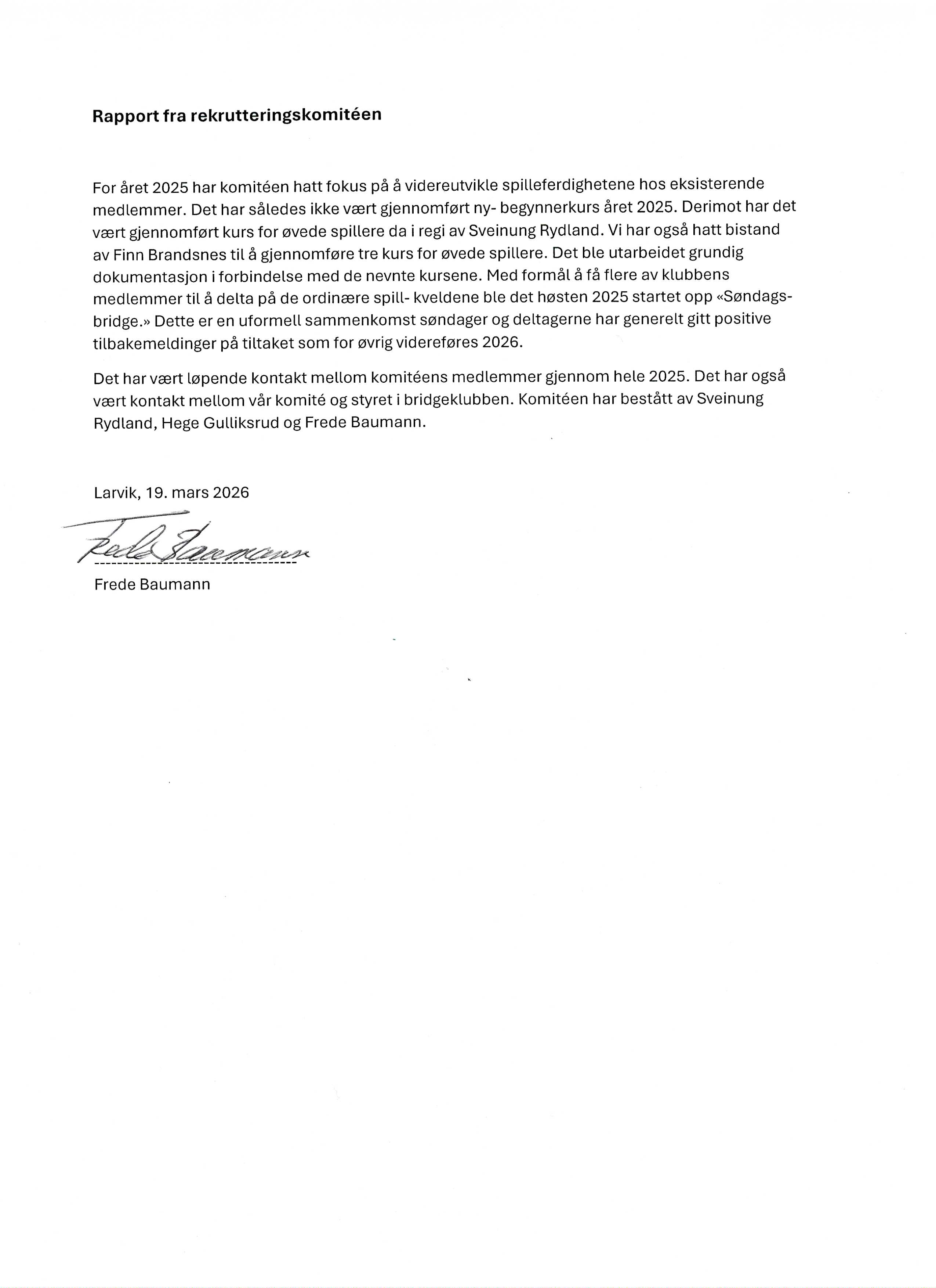 Årsmøtet avholdes på Bridgens Hus torsdag 19. mars 2026 kl. 17.30.
