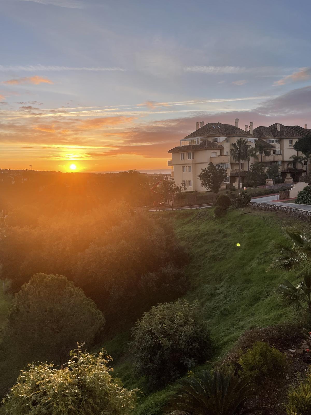 Vakker soloppgang fra balkongen der vi bor."